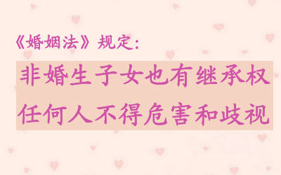 《婚姻法》第二十五條規定:“非婚生子女享有與婚生子女同等的權利,任何人不得加以危害和歧視。”該條的規定,把非婚生子女的地位視同婚生子女,也就是說,婚生子女享有的一切權利,非婚生子女同樣享有,且不允許任何個人、組織、法人加以危害和歧視,由此而引起的侵權,由侵權人承擔完全責任。
